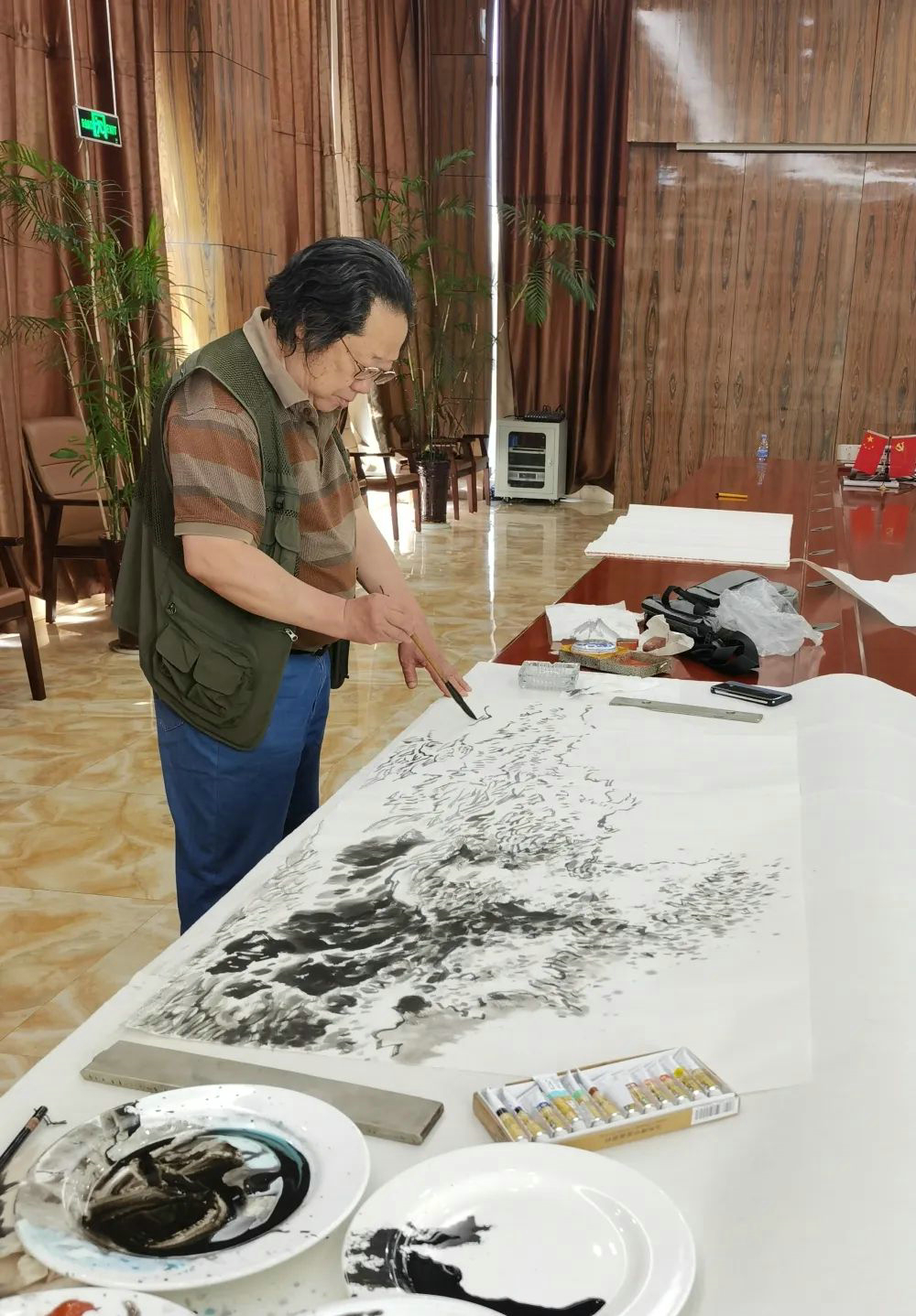 2022年5月21日,由日照日報社、日照新聞書畫院共同舉辦的“海曲?繪”活動,邀請秦緒堂、陶安金兩位日照書畫名家來潔晶集團,以海洋發(fā)展為底色,創(chuàng)作了一批優(yōu)秀書畫作品。
