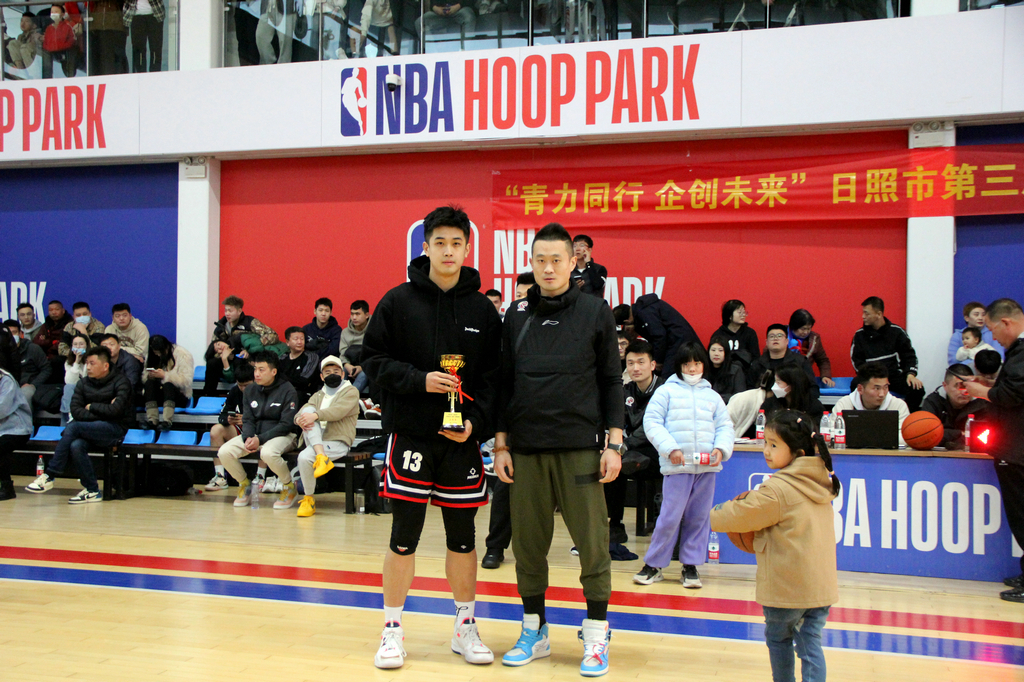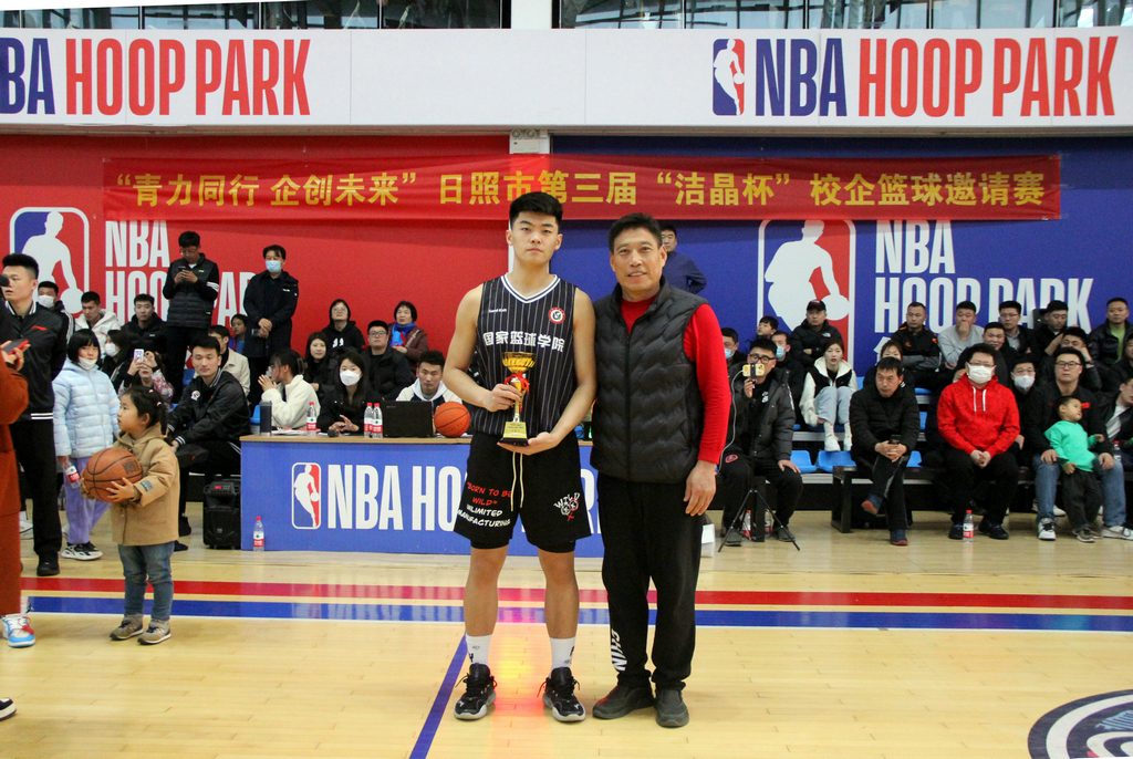 賽場上,球員們精神抖擻,奮勇爭先,隊友間配合默契,你攻我守,讓球迷們感受到了籃球賽的激情和魅力。經過3天激烈角逐,最終山東潔晶集團籃球隊獲冠軍,青島國信青年隊獲亞軍,山東科技大學隊獲季軍。決賽中場休息環節,舉辦了扣籃大賽和三分球大賽。一顆顆籃球落入筐中,贏來了陣陣喝彩,也將比賽的氛圍一步步推向高潮,山東體育學院隊的付曉坡獲扣籃大賽冠軍,山東科技大學隊的劉闖獲三分球大賽冠軍。比賽結束后,閉幕式上,團市委書記李婉瑩,市體校黨總支書記、校長周揚桂,特邀嘉賓劉喜友教援,日照青年企業家協會副主席、潔晶集團總裁林成彬分別為冠軍、亞軍、季軍,第四名球隊頒獎。